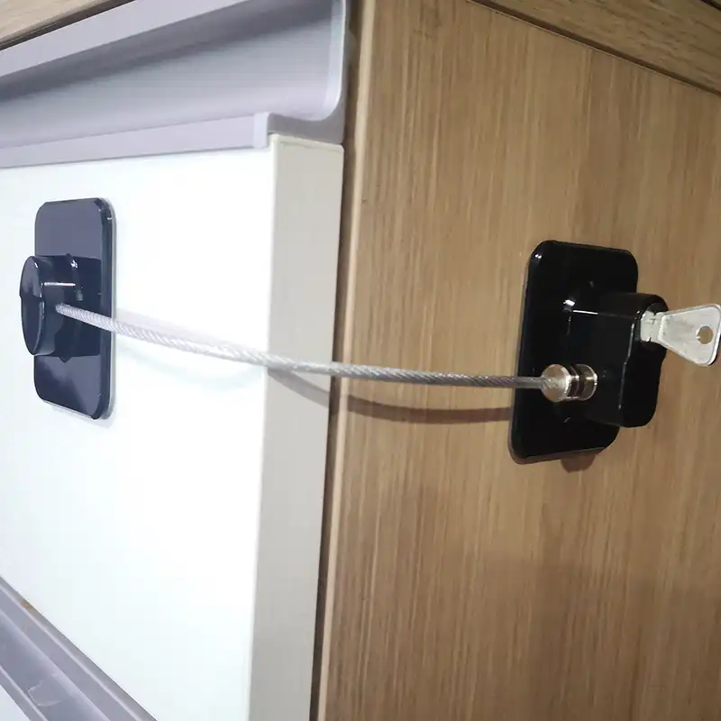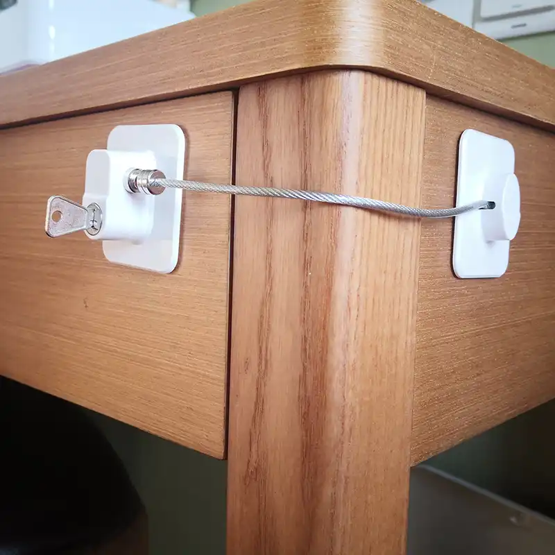 Our cabinet locks for children with high quality and upgrade standard base (1.8×2.3 inches) for the stronghold, Can reuse the adhesive lock with 2 extra sticky tapes and backup key for drawer locks, Child Safety Strap Locks won’t damage furniture and appliances; baby proofing cabinet locks with practical and simple design, drawer locks child proof can help to prevent baby’s hands from being injured, Just turn the key and remove the hasps, And you can open and lock for cabinet doors easily; child proof cabinet locks no drilling can effectively protect your toddler’s safety
